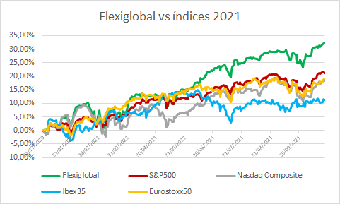 A nivel corporativo Tesla VOLABA: superaba esta semana el trillón de dólares de capitalización bursátil y los 1.000 dólares por acción gracias a la noticia de que Hertz, la empresa americana de alquiler de coches, hiciera un pedido de 100.000 coches eléctricos, haciendo subir a la acción un 6% el lunes (recordamos que nosotros la compramos para el Flexiglobal en enero 2020 a 108 dólares (precio ajustado al split posterior)